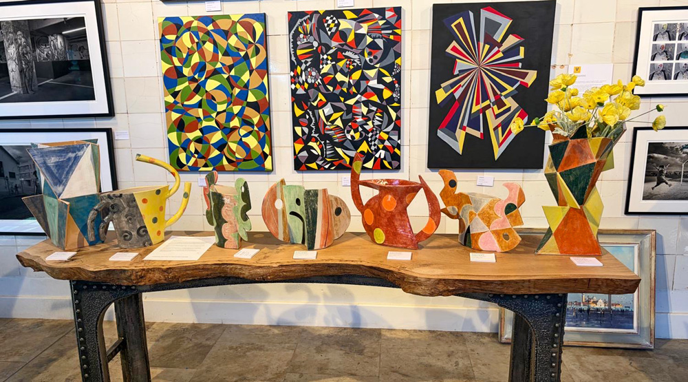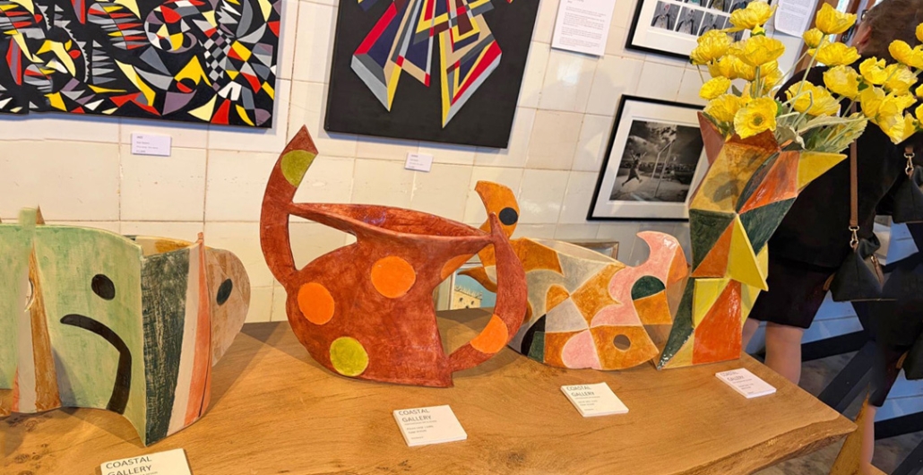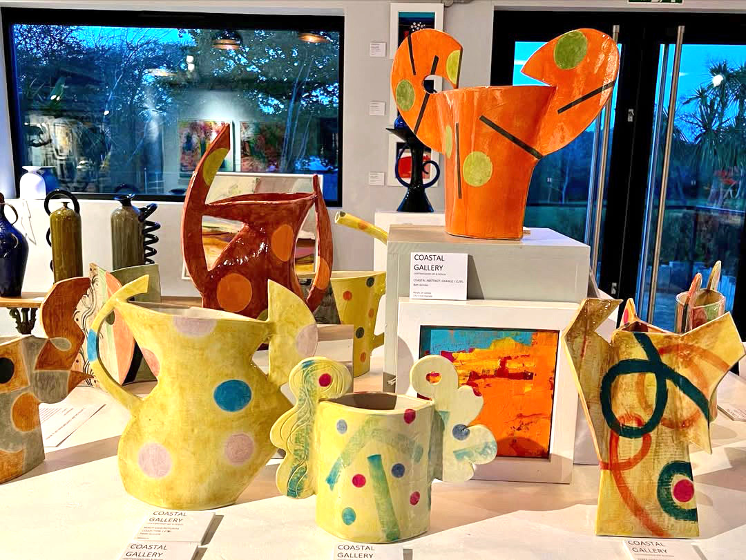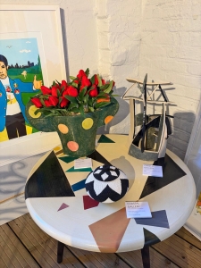 The Palais des Vaches is showing a number of new Peter Arscott ceramics in its spacious gallery, open on Thursdays and at the weekends 11 – 4. Those of you who’ve followed this blog for some time will remember that the building used to be a cowshed and milking parlour before its conversion. It’s the brainchild of Nick and Caroline Rothschild – he is a pioneer in the video industry in the 1970s, where he made films and won a Gold Medal in the New York Film and Video Festival. After living in London, Nick and Caroline (also an artist), moved down to the family estate, which includes the beautiful gardens at Exbury.