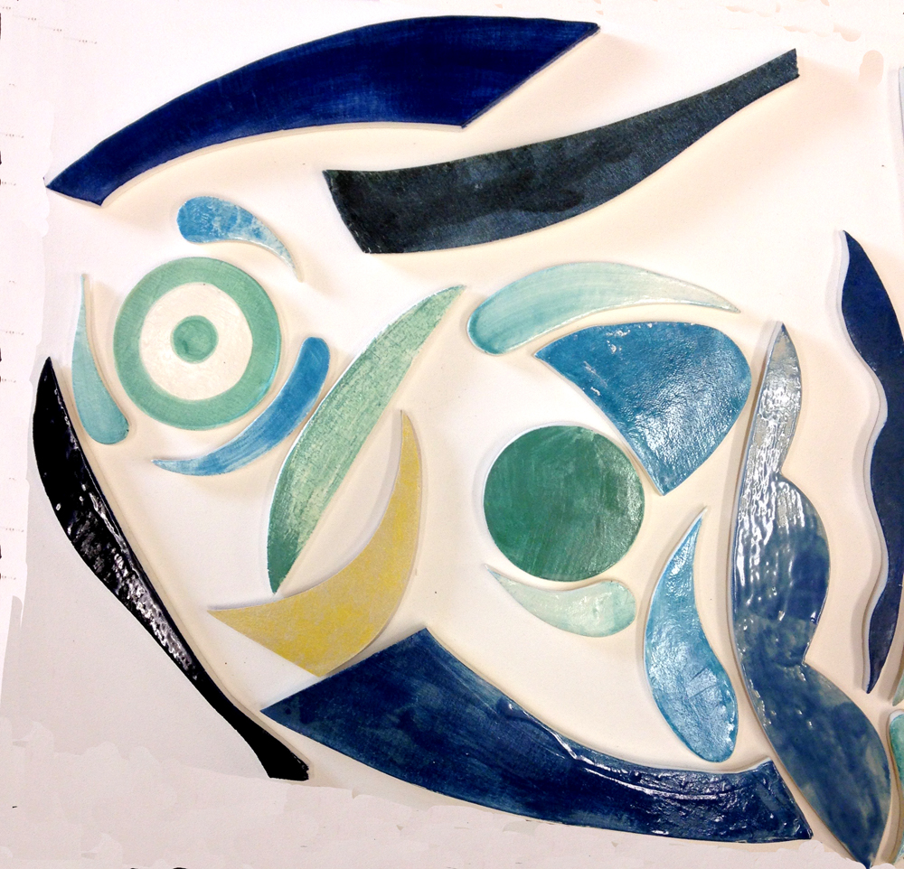 Looking at some of the pieces that have recently come out of the kiln, like the one above, anybody might think that Peter Arscott Ceramics is keen on making work that displays the principles of movement, by showing flowing lines and edges that we find in the natural world. But it is rhythm and pattern in the mark making that is of primary concern and this sometimes leads to this impression of movement – repetition of elements or colours. We are just as keen on placing spots on the surfaces, which achieve the opposite, anchoring a design, like the one below.