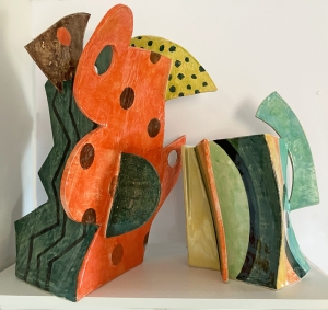 It’s probably true that artisans know exactly what they want to do and know how they are going to do it. At PAC we don’t know exactly what we are going to do. We know vaguely how to get there, but we don’t know which choices we are going to make. For example, we might decide to make a vase with raised arms, but until we cut the slabbed clay into the shapes, we have no idea exactly what those arms will look like. Too much pre-planning removes the element of surprise that keeps a piece fresh. Every piece is singular.